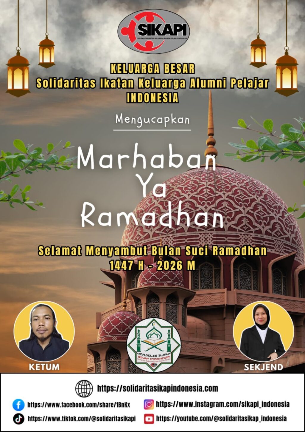 Dalam rangka menyambut datangnya Bulan Suci Ramadhan 1447 Hijriah / 2026 Masehi, Keluarga Besar Solidaritas Ikatan Keluarga Alumni Pelajar Indonesia (SIKAPI) menyampaikan ucapan Marhaban Ya Ramadhan kepada seluruh anggota , serta masyarakat luas.